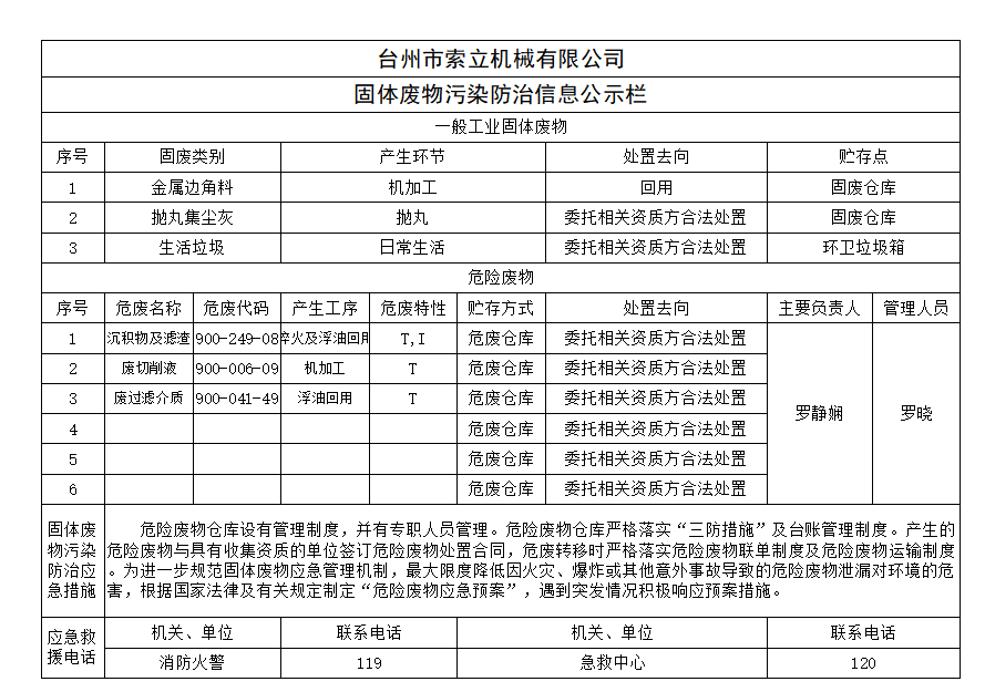 固體廢物污染防治信息公示欄信息內(nèi)容如下